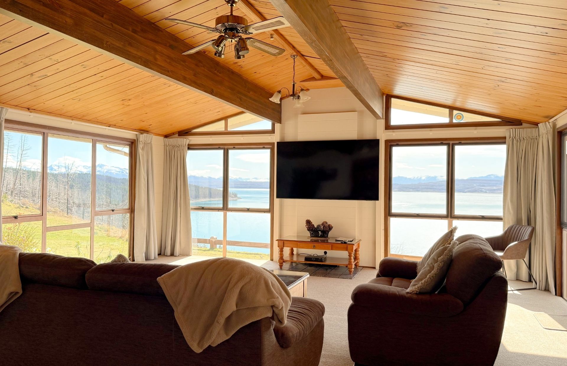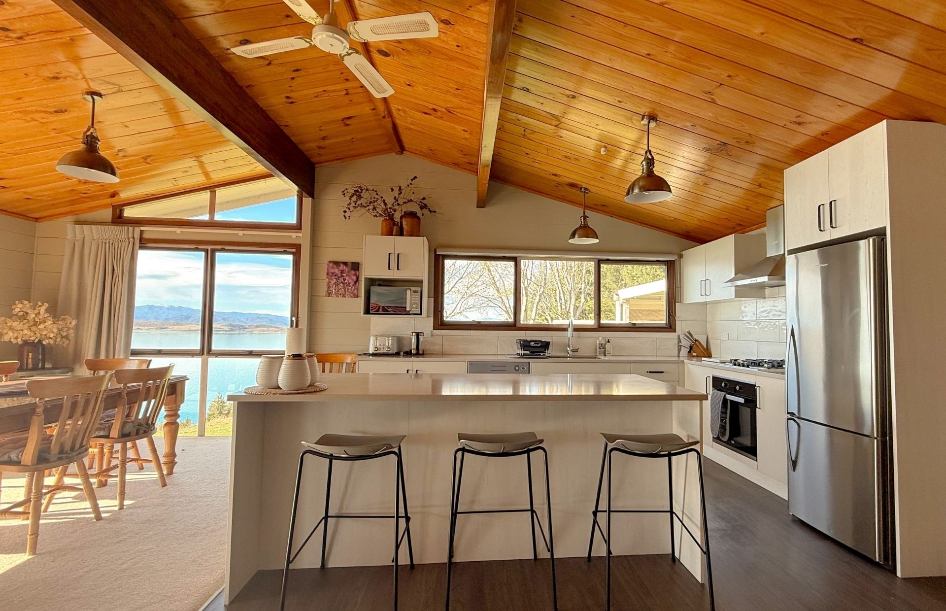 Step outside to a large deck and lawn where you can relax, play, or simply take in breathtaking views of Lake Pukaki and the Southern Alps. Set in the heart of the Mackenzie Basin, this self-contained holiday home is a welcoming base for unforgettable adventures and lasting memories.